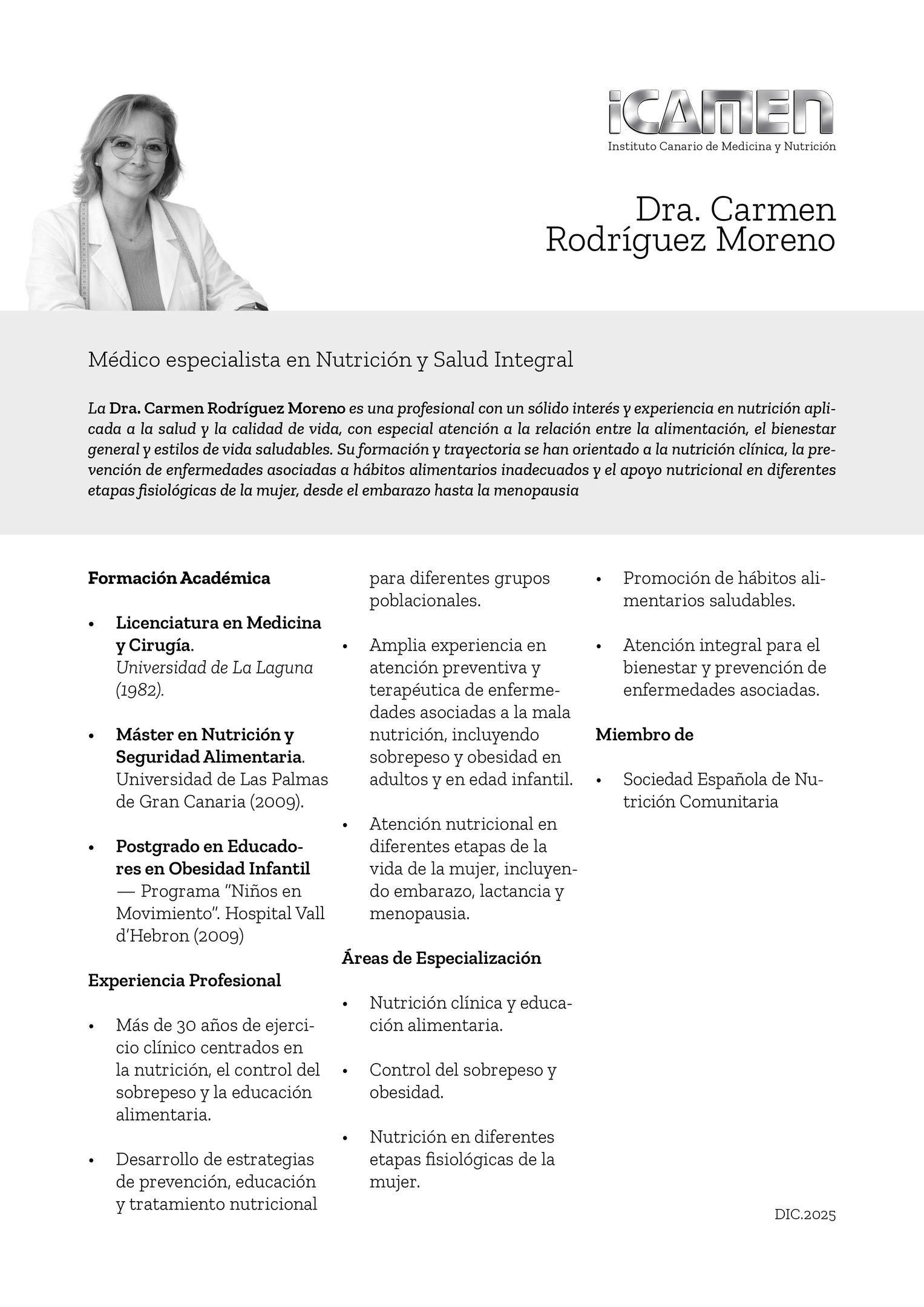 Nuestro equipo está formado por médicos especialistas en nutrición en Las Palmas, con una sólida trayectoria en medicina y nutrición clínica y una atención basada en evidencia científica.